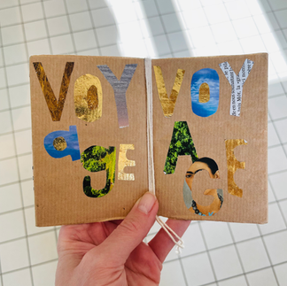 Réalisation d'ateliers pédagogiques sur-mesure pour le Palais Lumière de la ville d'Évian à l'occasion de la très belle exposition "Artistes Voyageuses. Cet atelier a été pensé tout spécialement pour les collégiens, pour leur permettre de s'évader et de RÊVER! Au programme : fabrication de carnets papier, puis collecte et assemblage d'images en tous genres pour créer leur propre voyage "sans limite" à la manière d'un vrai carnet de voyage (froissage de papier, découpage et création de lettres typographiées, légendes, dessin, vieillissement du papier, croquis réalisés lors de l'exposition) L'occasion pour de nombreux élèves de rendre un hommage émouvant à leurs pays-racines. Un succès incontestable pour cet atelier, et de très beaux moments partagés!